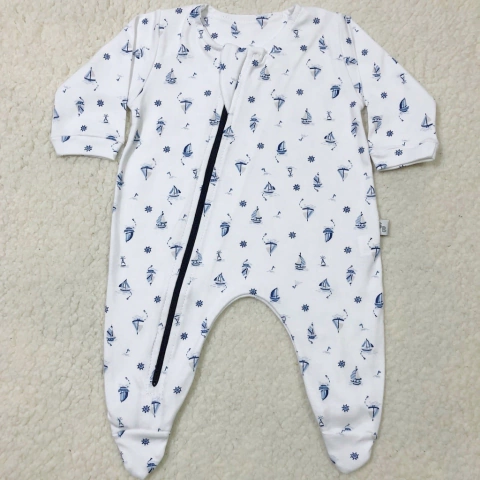 Descripción: Enterito estampado con pie, con abertura con doble cierre en la delantera.
